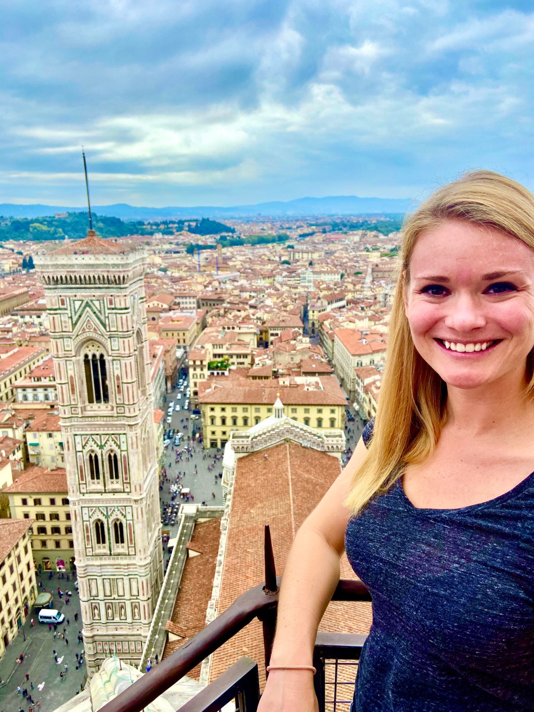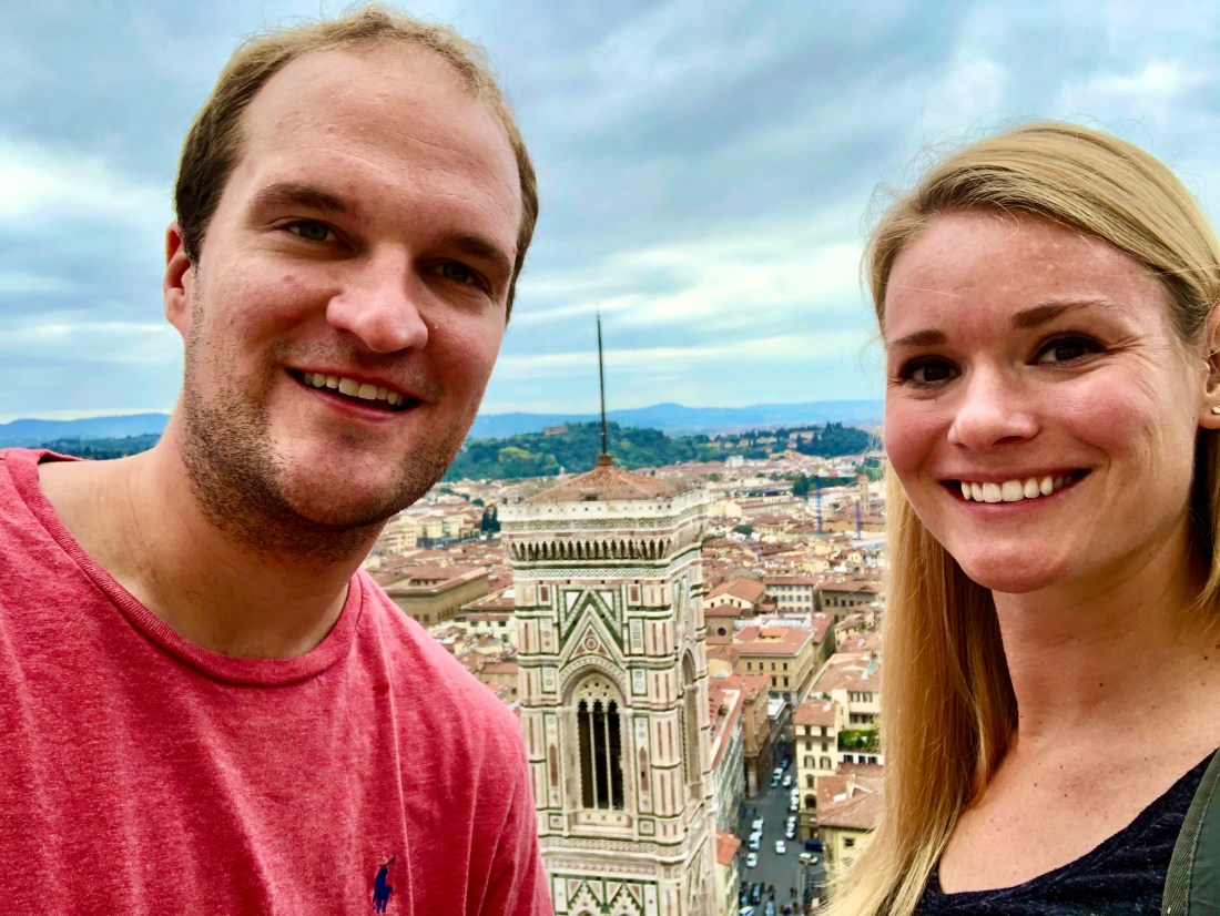 Our next adventure was sure to burn off at least some of those calories. It was time to hike to the top of the duomo. If you also want to see the best unobstructed views of Florence, make sure to book a ticket to climb the duomo ahead of time. They assign you a time to climb the 436 steps to the top between the two domes – the duomo is actually a dome within a dome fun fact. You also get to get up close to the churches painted fresco ceiling. Well worth it.