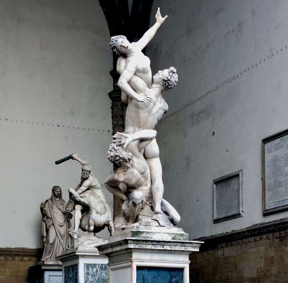 The Rape of the Sabine Women (aggressive title I know). Actually by a Dutch sculptor who studied the work of Michelangelo to achieve the spiral design. Probably the most impressive piece in the square in my opinion.