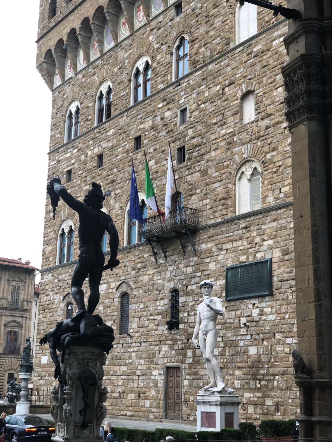 We arrived in Florence late Friday and made our way to our Airbnb in the heart of Signoria Square near Palazzo Vecchio. What a prime location. What the Airbnb has in location though it lacked in amenities (tiny everything – shower, tv, hairdryer) and a non existent WiFi connection. But the price was right and who spends time on the room in Florence anyway? We went right to sleep to prepare for our first packed day.