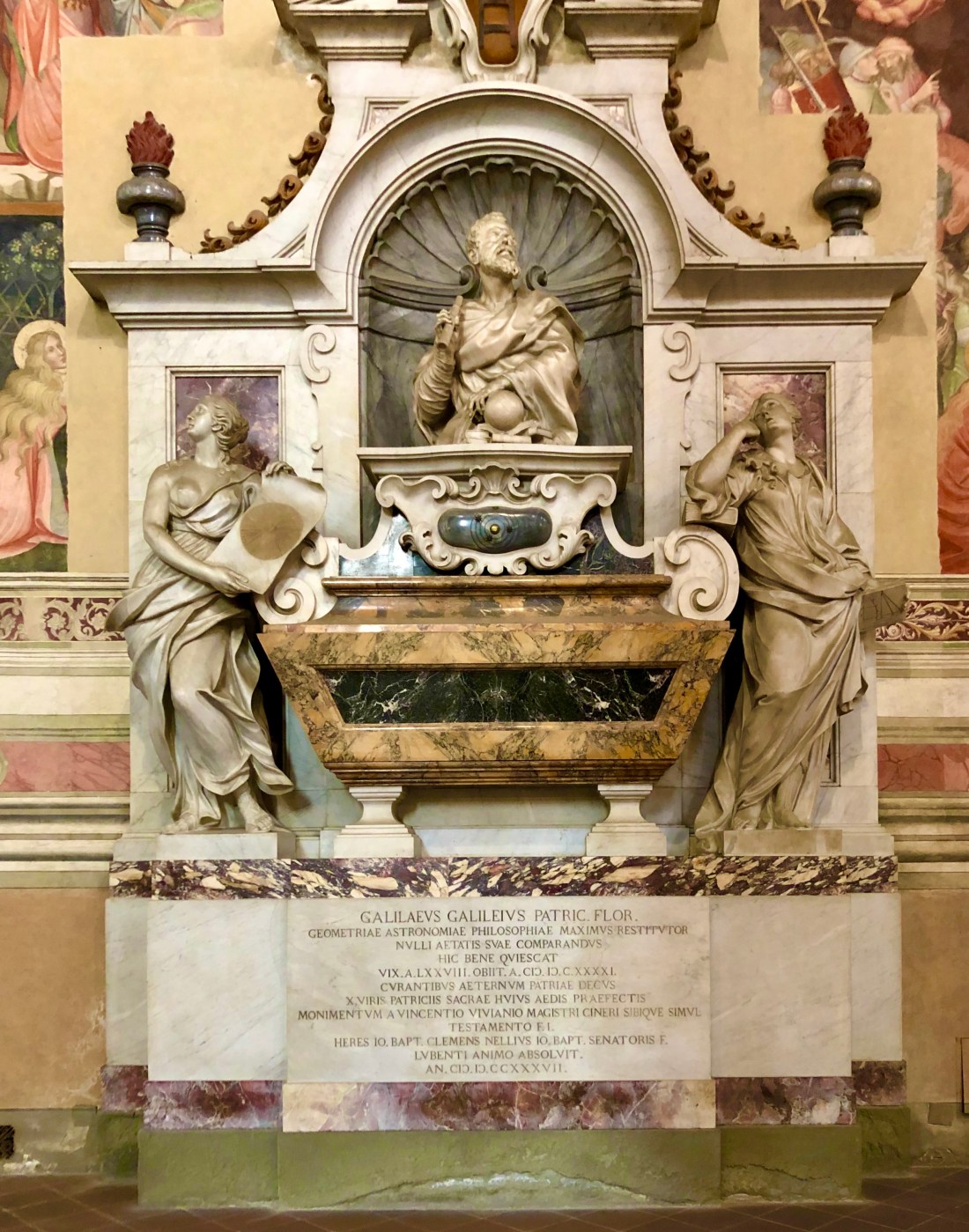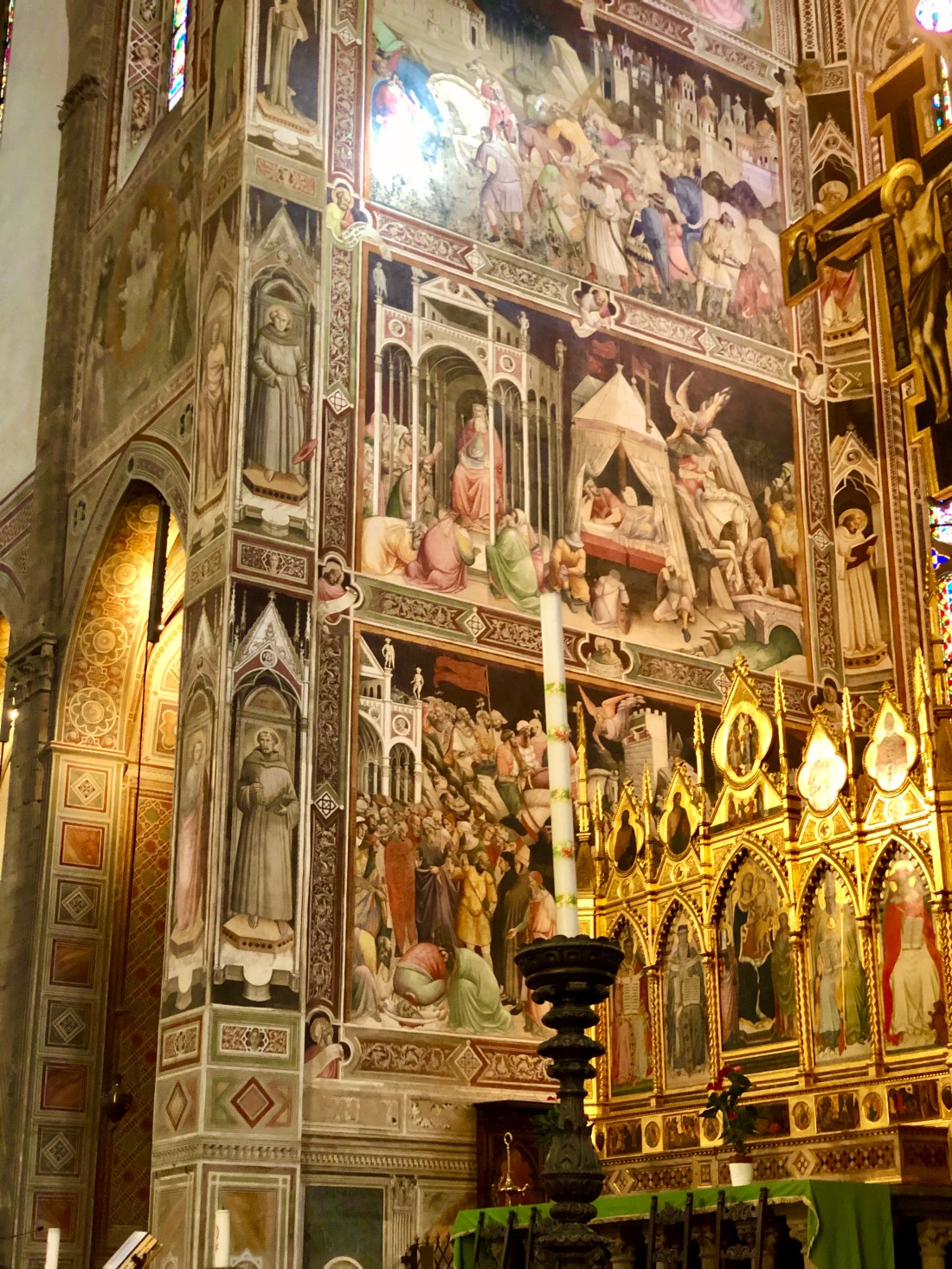 After the Duomo we ventured on to la Basilica di Santa Croce – the Westminster Abbey of Italy. Here we found the tombs of Michelangelo, Galileo, and other famous Italians I only recently had heard of from thus tour so I won’t bore you with them. Also beautiful frescos line the walls increasing the visual splendor.