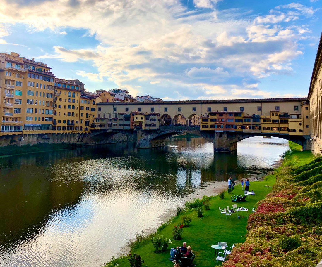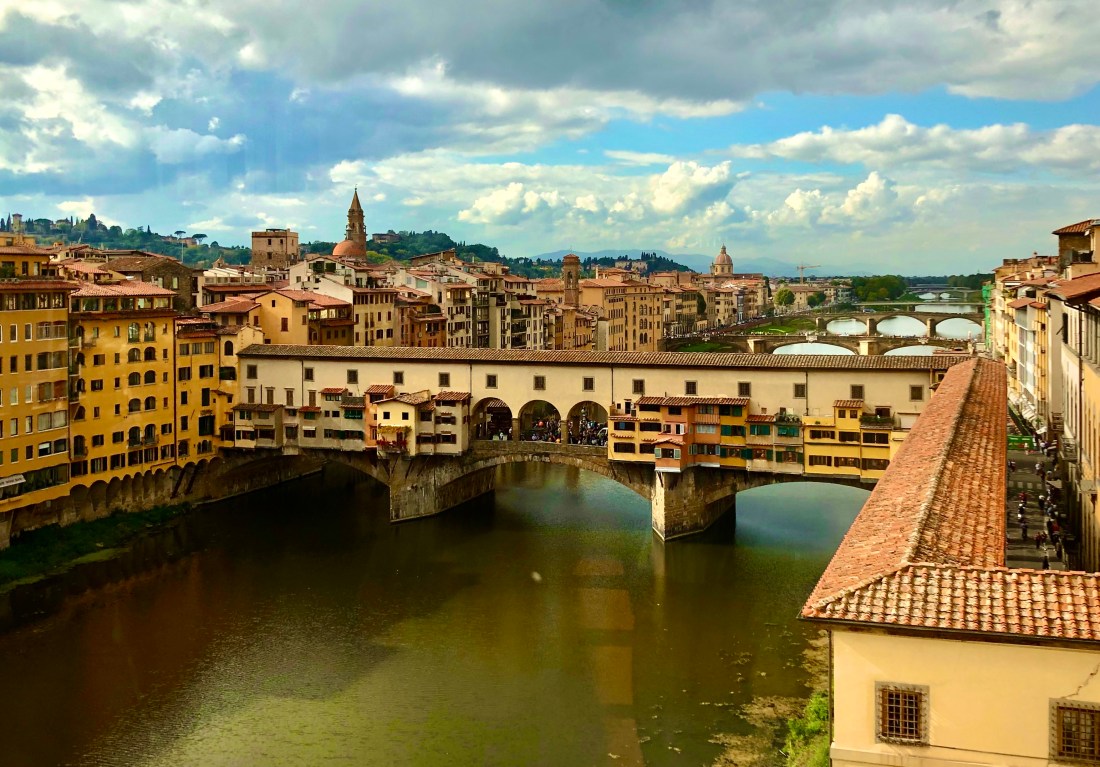 Next we passed by the Uffizi (more on this later) down a few blocks to the Ponte Vecchio. This is the last original bridge in the city as the remainder were destroyed during WW2 in an attempt by Hitler to slow the advance of the allies. Thankfully there was one German who didn’t listen and decided to save the oldest of the bridges. Instead of blowing it up, he made it impassible by destroying buildings on the banks and blocking both entrances. Today it’s home to picturesque views and about 50 jewelry stores. Oh and hoard of tourists.
