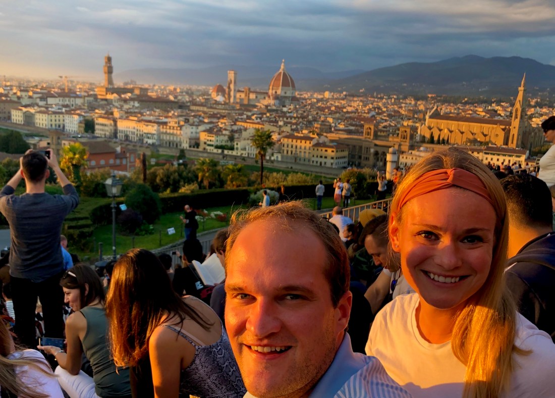 By this time, it was time to make our way across the river to the Piazzale Michaelangelo for sunset. We stocked up on wine and snacks to enjoy the view. It is a hike up to the top but well worth it. This is probably one of my favorite things we did but I am also a sucker for a good sunset. We also got to enjoy incredible views of the whole cityscape.