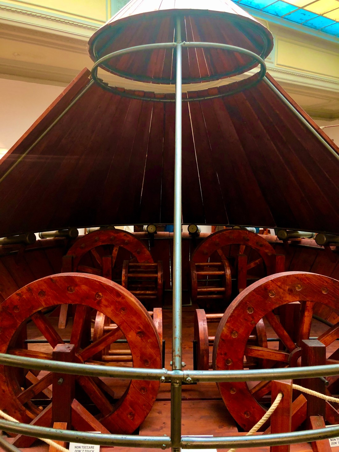 When we finished admiring the works of Michaelangelo it was off to a small museum dedicated to Leonardo da Vinci. The museum has a video – which we watched basically all of – on da Vinci’s life. Interestingly it seemed when he was younger he actually didn’t have much interest in painting but it paid the bills. He spent a large amount of time trying to become a military engineer. The notebook he kept detailing all his scientific thoughts from anatomy to flight to mechanical designs laid the groundwork for many modern inventions. Below is one of his drawings realized – an early version of a tank.