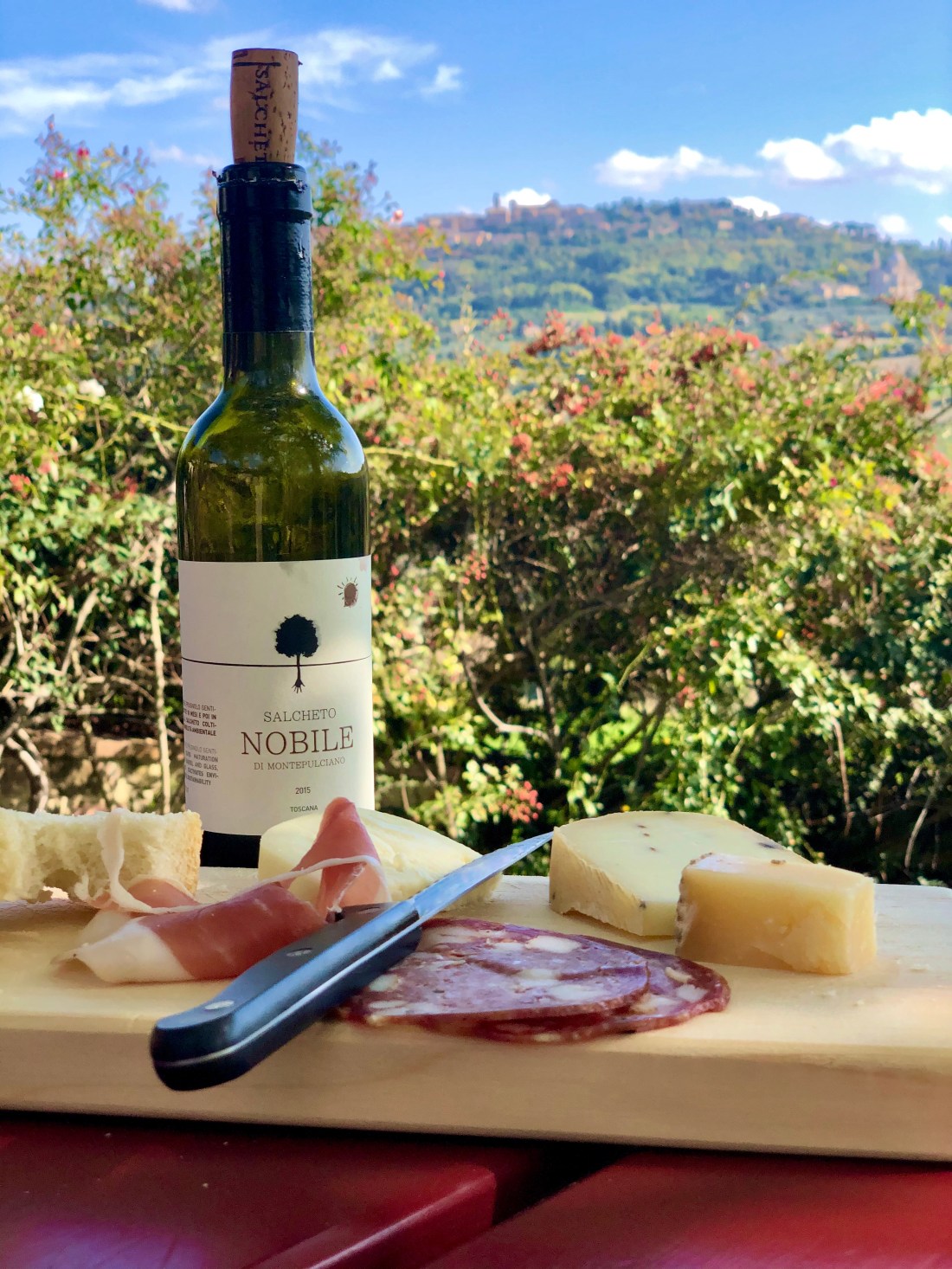 Our final stop was Ercolani which was actually right next to our Airbnb in Montepulciano. We had a nice “light lunch” of meats cheeses and breads and were treated to wine from a glass as big as our heads.