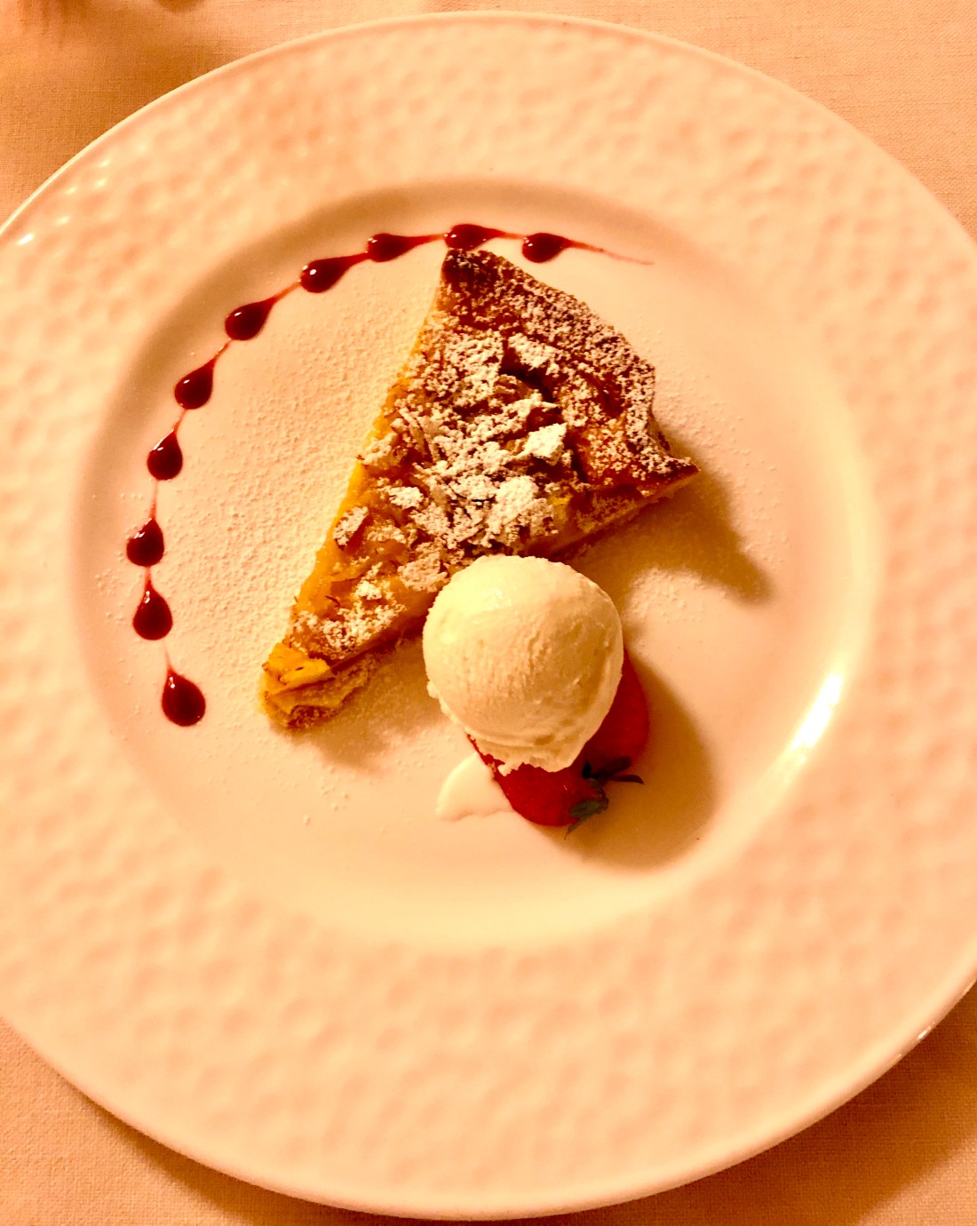 Now dinner time! We went back to a restaurant I went to with my family back in 2008 and loved – 4 leoni. The steak Florentine was the best steak we have had in Europe. Unfortunately for all of you, I enjoyed the food so much I don’t have any pictures to offer except this exceptional cheesecake and even that is half eaten… whoops.