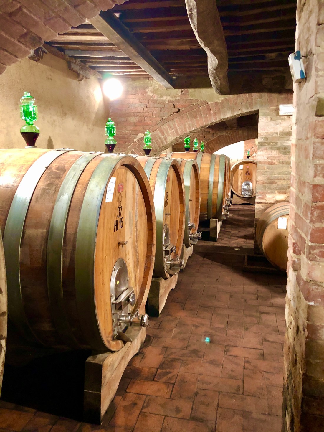 After 2 very full days in Florence it was time to relax a bit in Tuscany. We rented a car to get to Montepulciano which was where our Airbnb was. On the way we stopped in Montalcino at the Campana winery. Montalcino is the home to Brunello wine which is 100% Sangiovese grapes and aged in large Slavonian (Croatian) oak barrels for at least 2 and half years or so. We were a little behind schedule so I felt a little like they were rushing us but the wine was excellent and the views were beautiful.