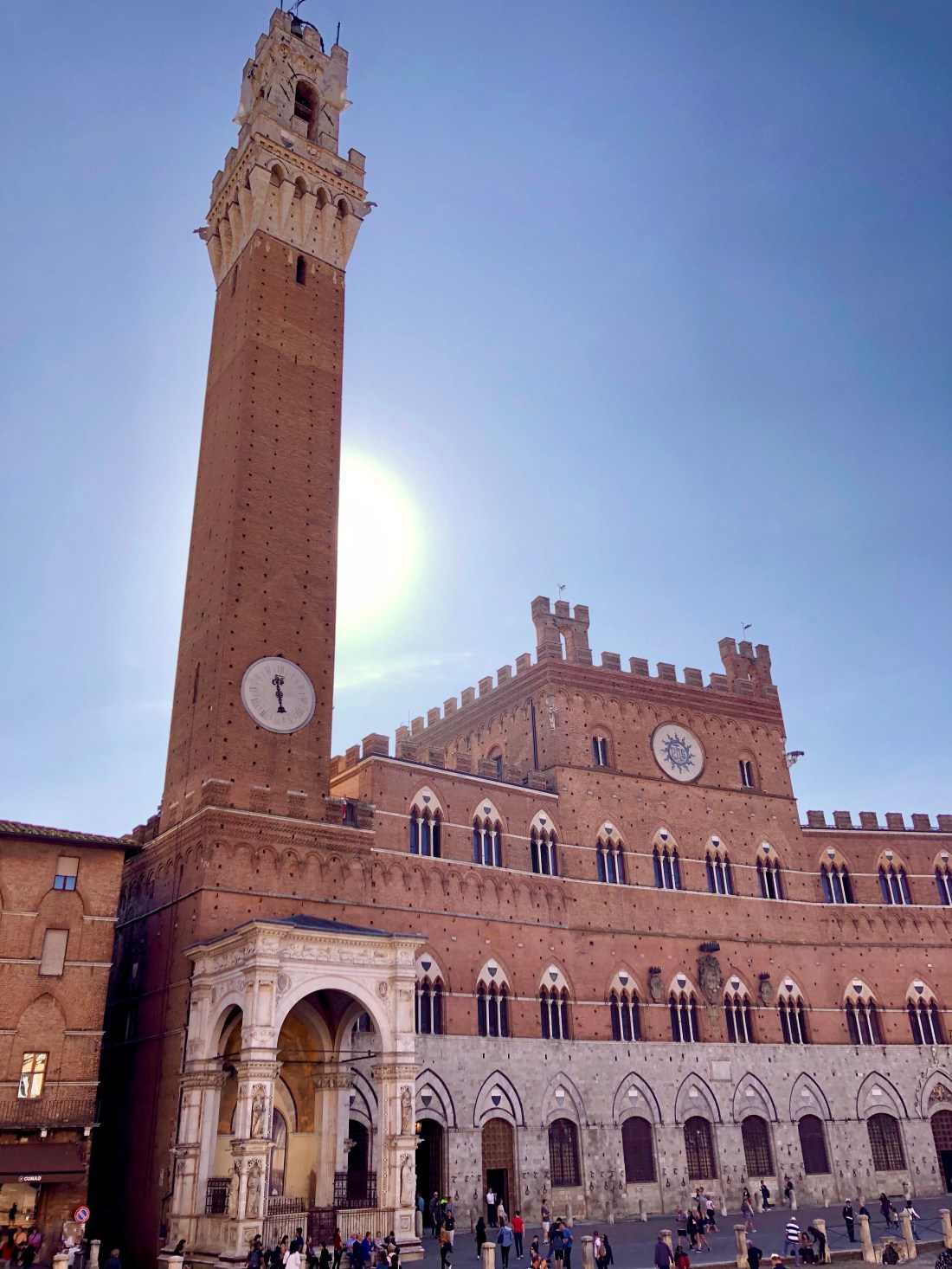 We walked around a bit more before arriving at the Piazza di Campo which is the site of the famous horse races of Siena. There are 2 races each year, one July 2 and one August 16. There are 10 horses in the race each from a different neighborhood. This year, the August race was won by the rhinoceros neighborhood and the horse won without a racer. There are many many more facts I can list but I won’t for your sake as this blog is already quite lengthy. If you’re interested send me a note and I can elaborate. For now pictures of the square!