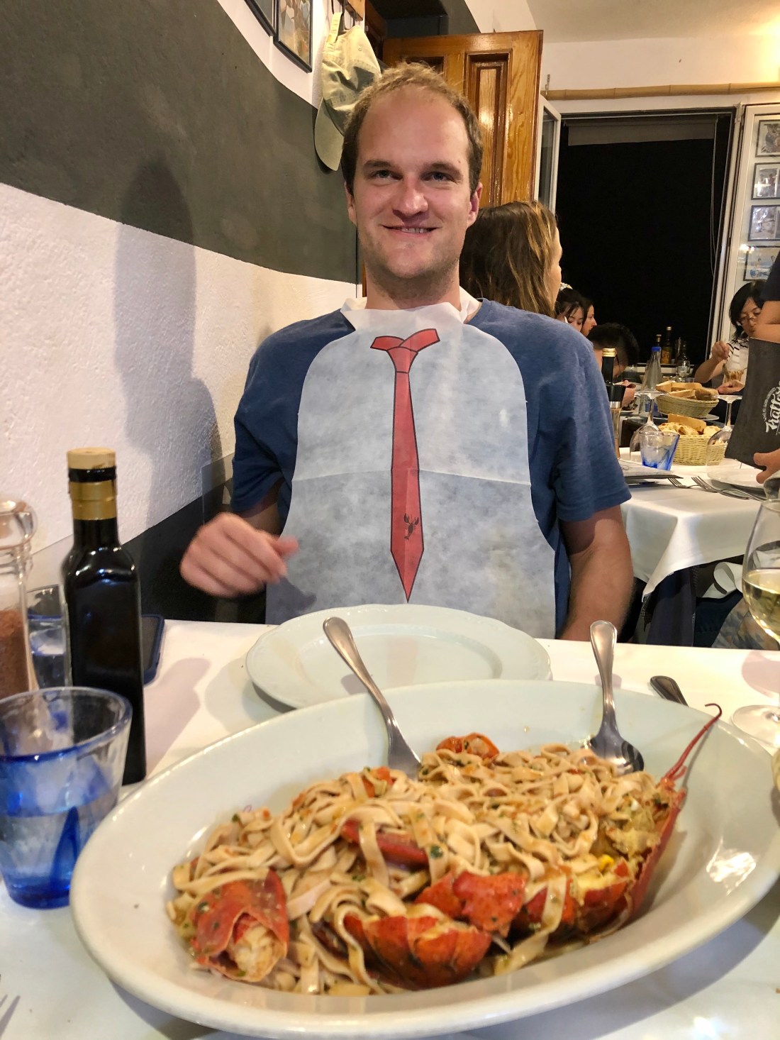 Ok almost to the end. Our second to last stop was Cinque Terre, a series of 5 cities on the sea. We stayed in the city that is the second farthest south – Manarola. We arrived to learn the following day had an orange alert due to the rain (ie flooding risk) which basically meant the whole city would essentially be shut down the following day. So our first stop was actually the grocery store for breakfast supplies, snacks and of course more wine. With that settled we were off to dinner at a place at the top of the hill called Billy’s (appropriate). We had some pretty lovely (and large) lobster pasta then retired home to enter into a food coma.