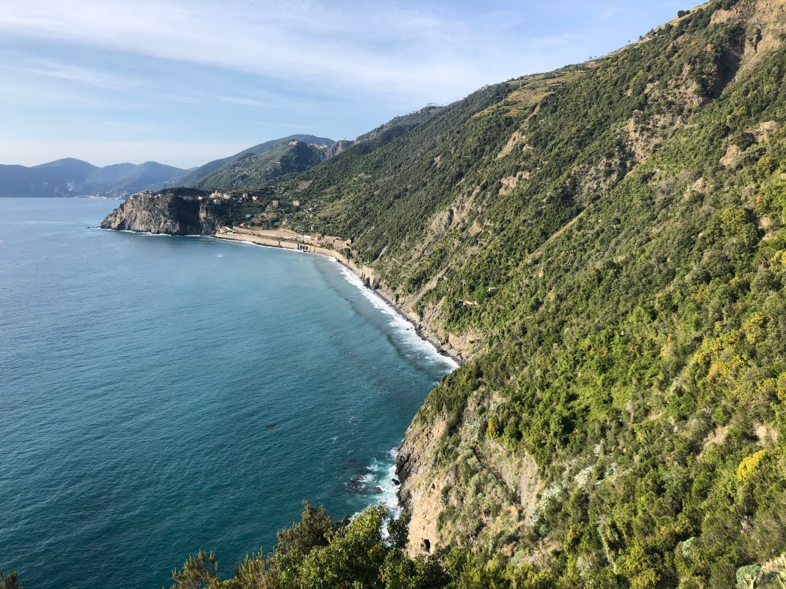 Then we took the train to Monterosso so we could hike back to Manarola. First hike up – Monterosso to Vernazza. For those unfamiliar with hiking Cinque Terre, for the most part there is a shorter hike between each of the two cities (hour or so) and a longer hike (2+ hours). There are a couple of the shorter routes that are closed from mudslides so only the long hike is open. The short hikes you have to buy a card to access which is €7.50. When we got to the trail head it was very hastily taped off from the previous day. We assumed no one had removed the tape after yesterday’s storm so we went on. The tail was a bit muddy but totally fine and the views were lovely. This was probably my favorite of the hikes we did.