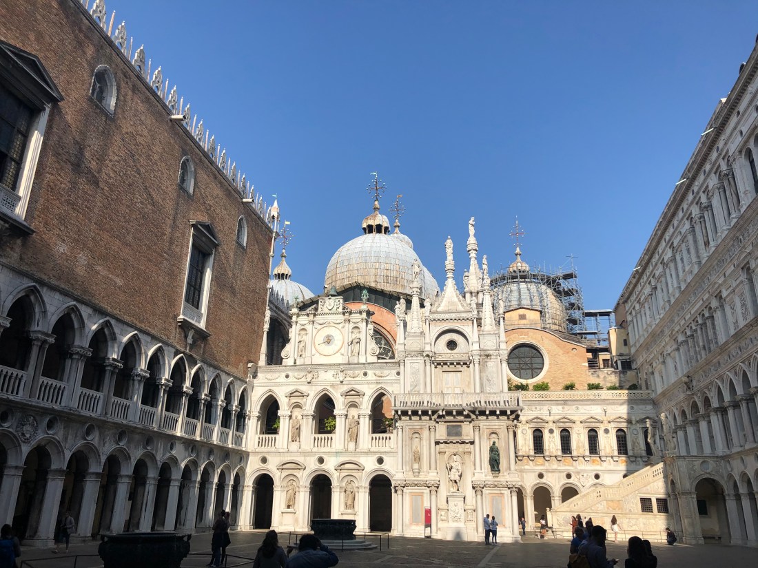 In our attempt to wait it out (ultimately unsuccessful) we started our visit with a trip to the Doge’s palace. The Doge of Venice was the elected leader of the city back in the day. The palace was pretty and filled with art by Titian and Paolo Veronese. You also get to cross the Bridge of Sighs to the prison.