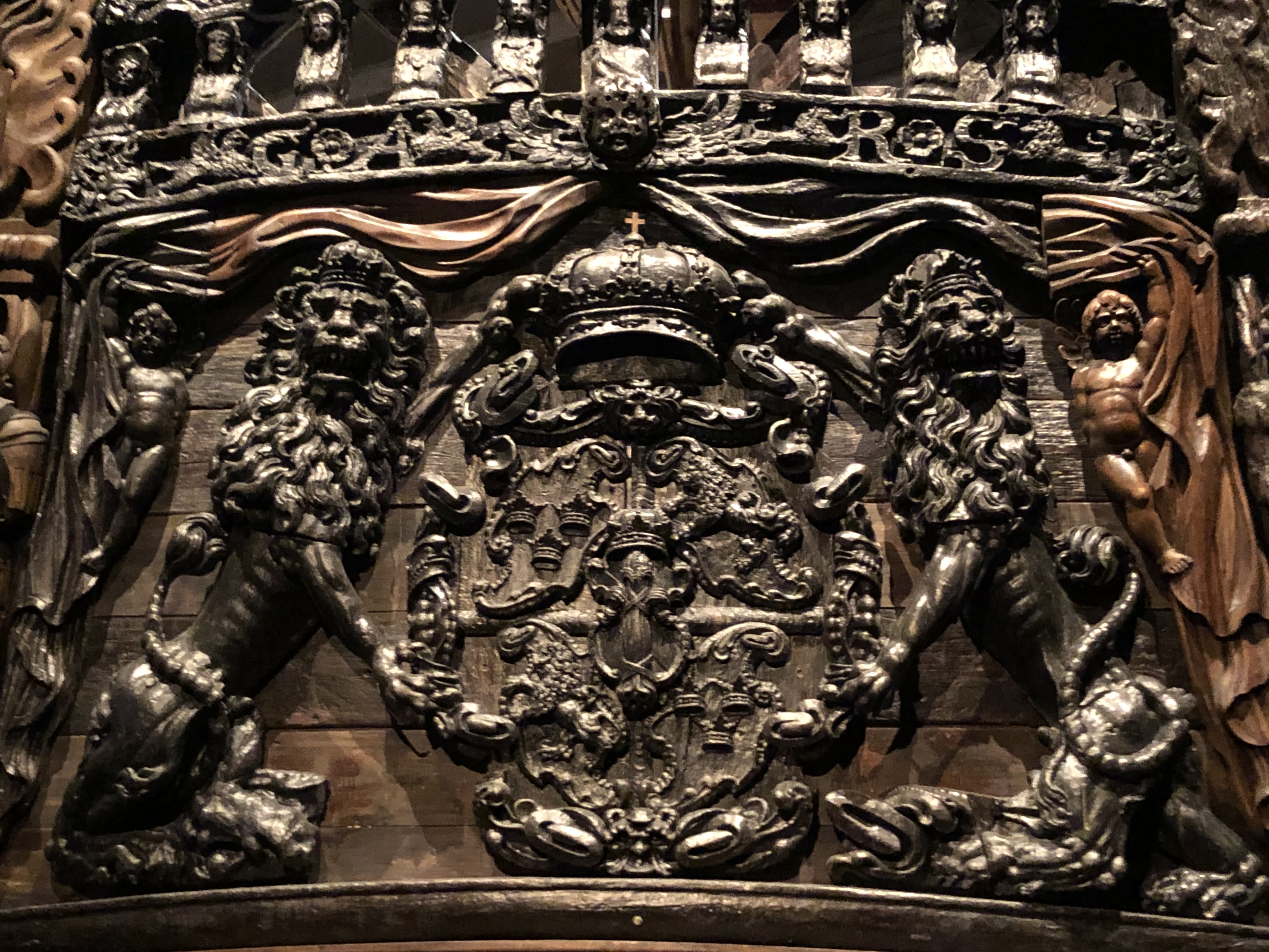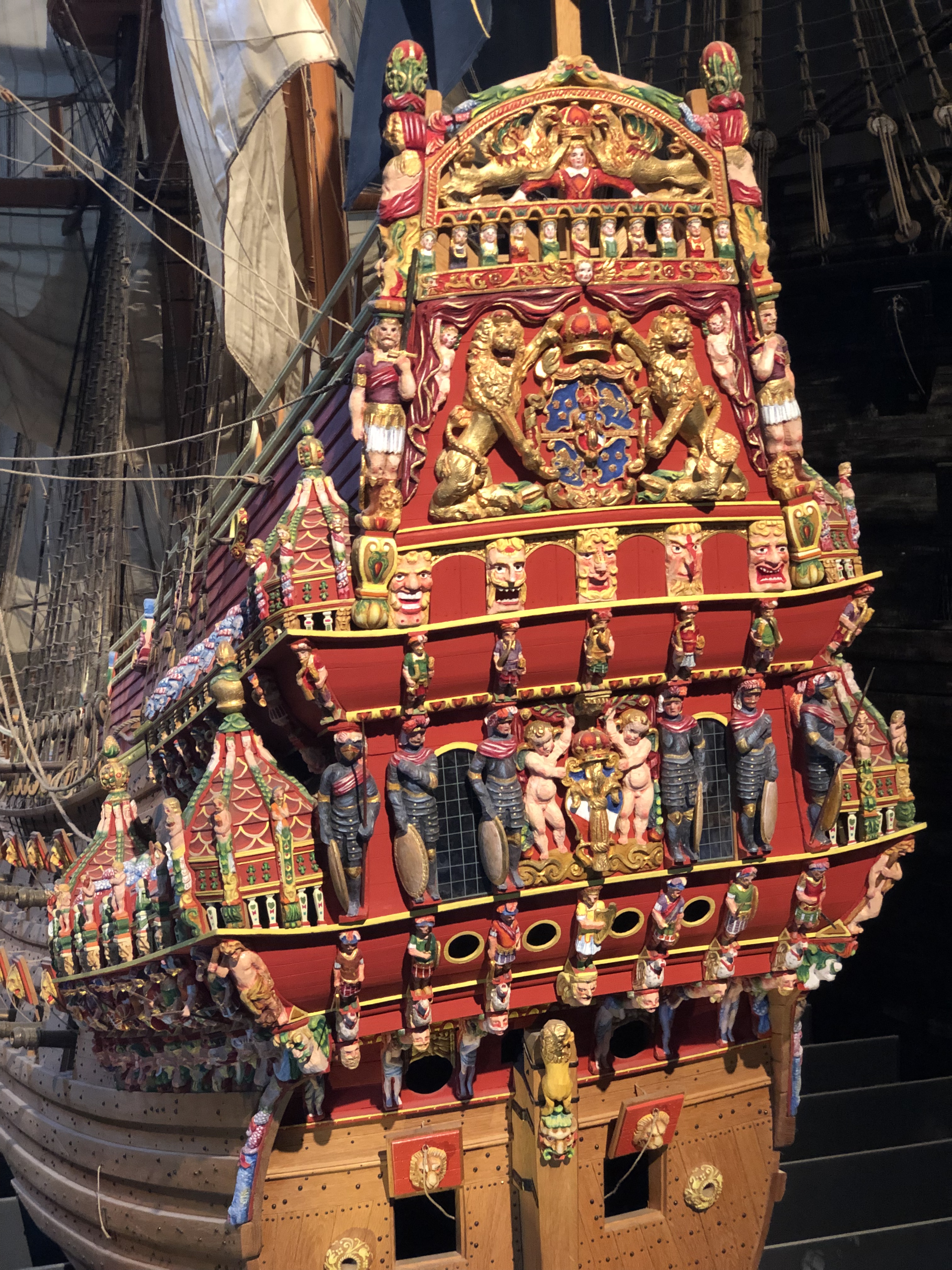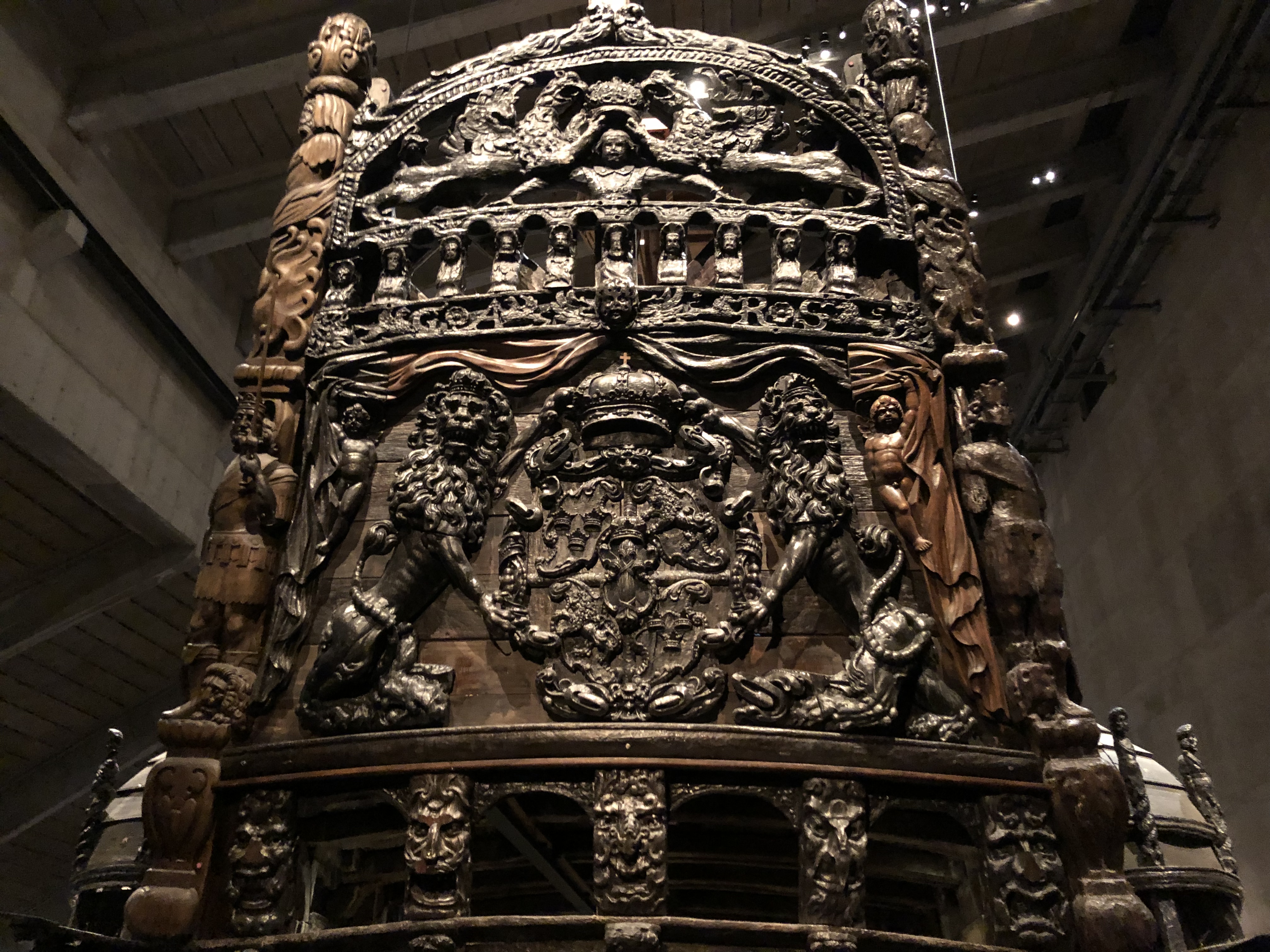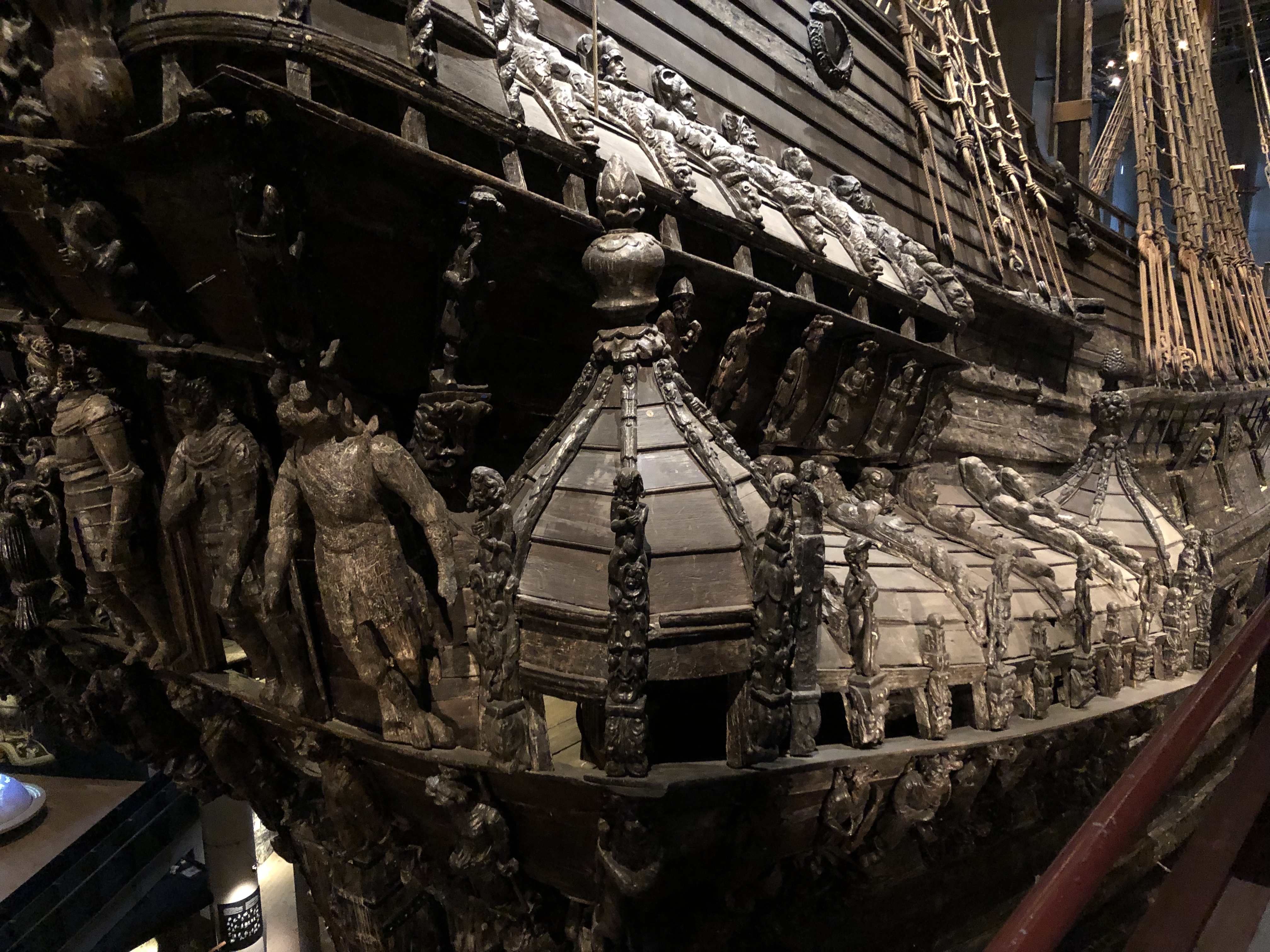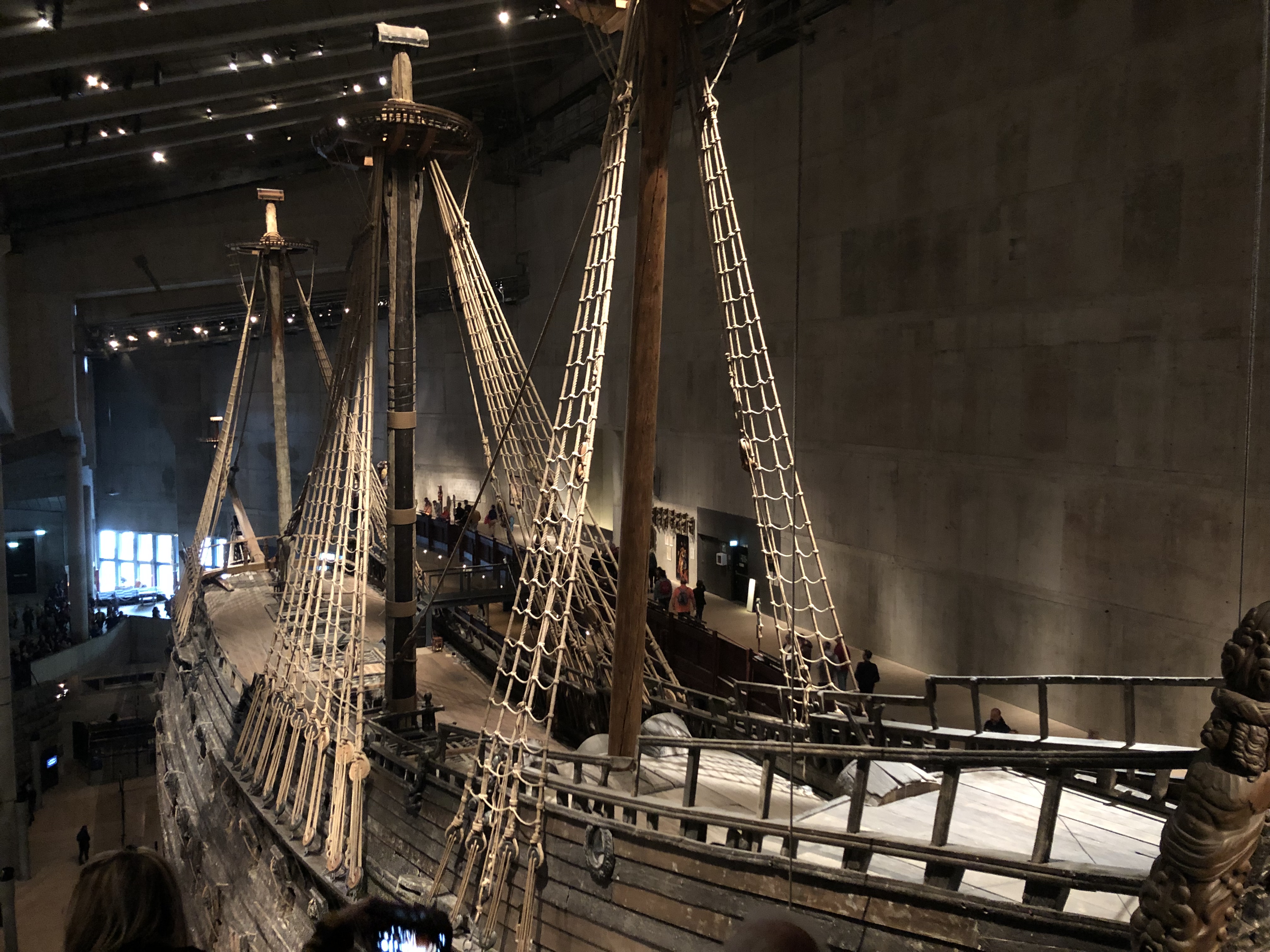 From the boat we headed to lunch of traditional, stereotypical Swedish fare including Swedish meatballs and some sort of hash (sorry no photos, ate it up before I remembered). Well fueled we went to the Vasa museum. The Vasa museum houses the remains of a giant war vessel that housed 64 cannons, took a year and half to build and sank shortly after it set sail. Apparently the 120 tons of stone at the bottom of the ship were not enough to weigh it down and it was too too heavy. So when the wind hit, down she went. She sank into about 6 meters of mud which preserved the wood of the ship so when they brought it up it was essentially intact. Admittedly, I read about this museum and had initially left it off my list of activities. It was highly related though and my dad mentioned we should go so we did. After going, I admit I was wrong to leave it off my list (and I don’t often admit to being wrong). The ship was pretty incredible.