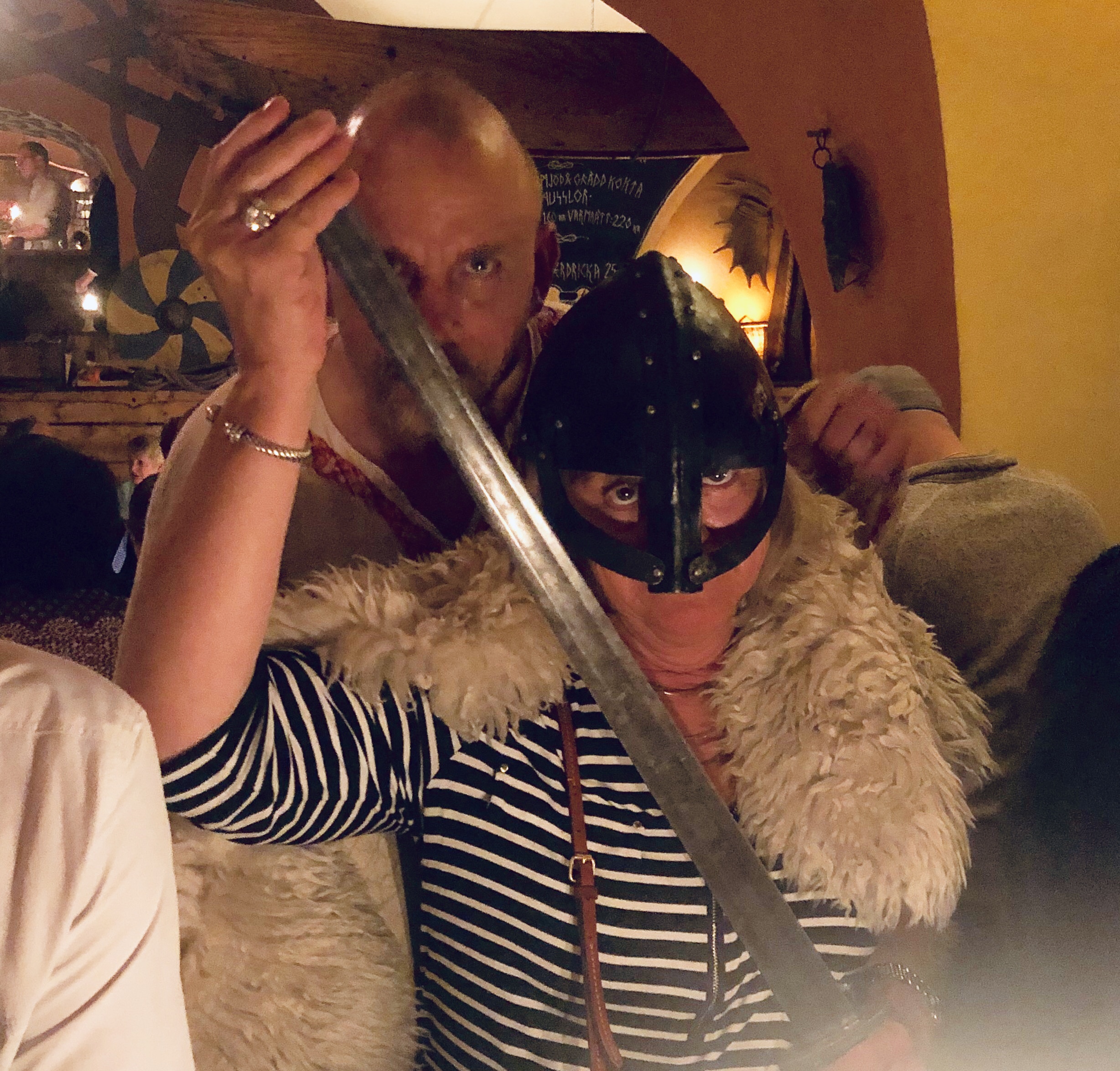 Post cake we went back to the Airbnb to rest a bit and pack before our last meal. For the final dinner I chose a place a little tourist my – Aifur Krog- a Viking theme restaurant because why not? I was a little worried if my parents would think it was cheesy but everyone enjoyed being announced when we first entered, cheering as others arrived, and listening to festive music. My parents even got to try out some costumes. And that’s what I will leave you with – photos of Ann and David getting in the Viking spirit. Stockholm was a great last stop to an amazing cruise. Until the next adventure!