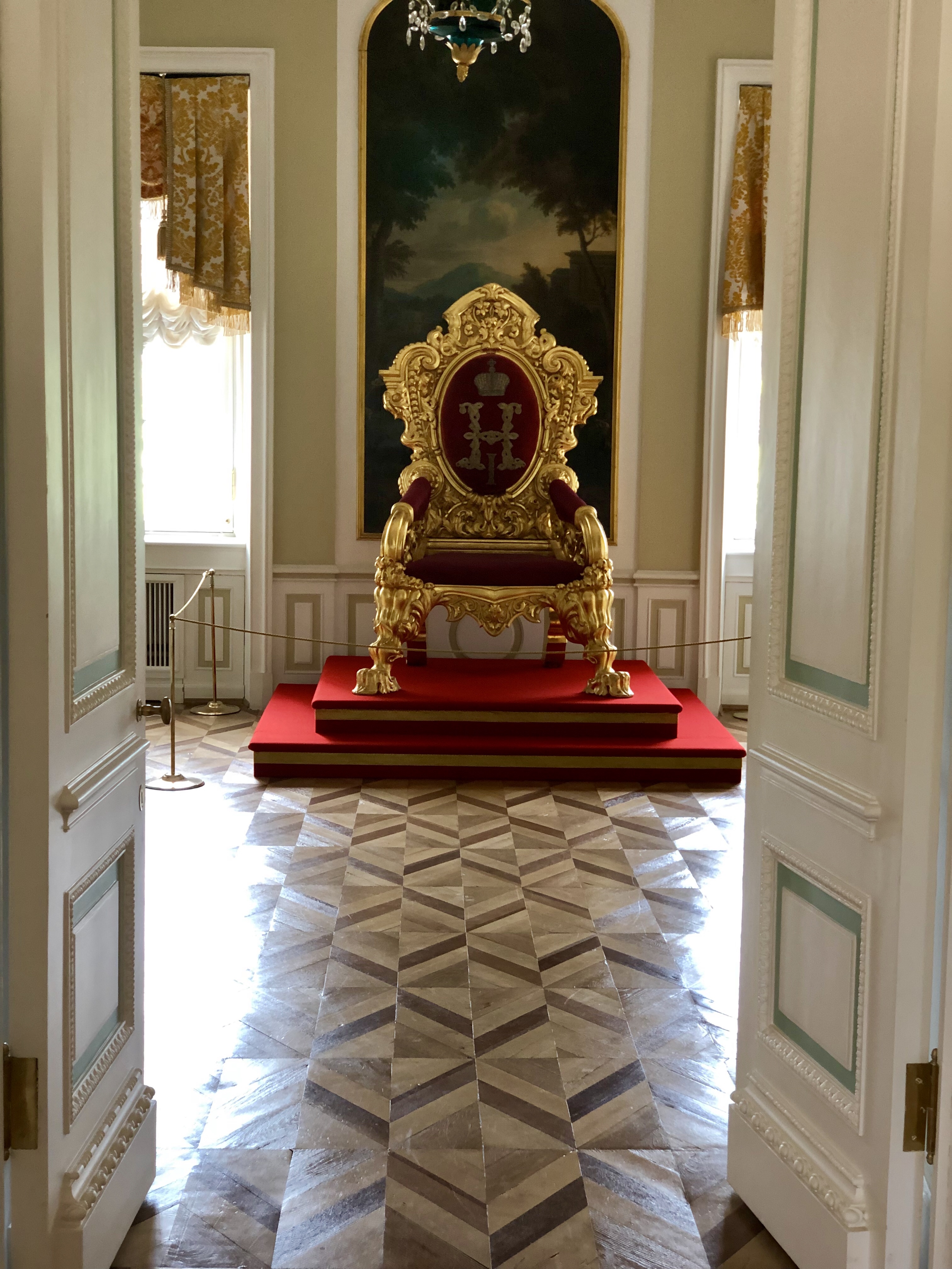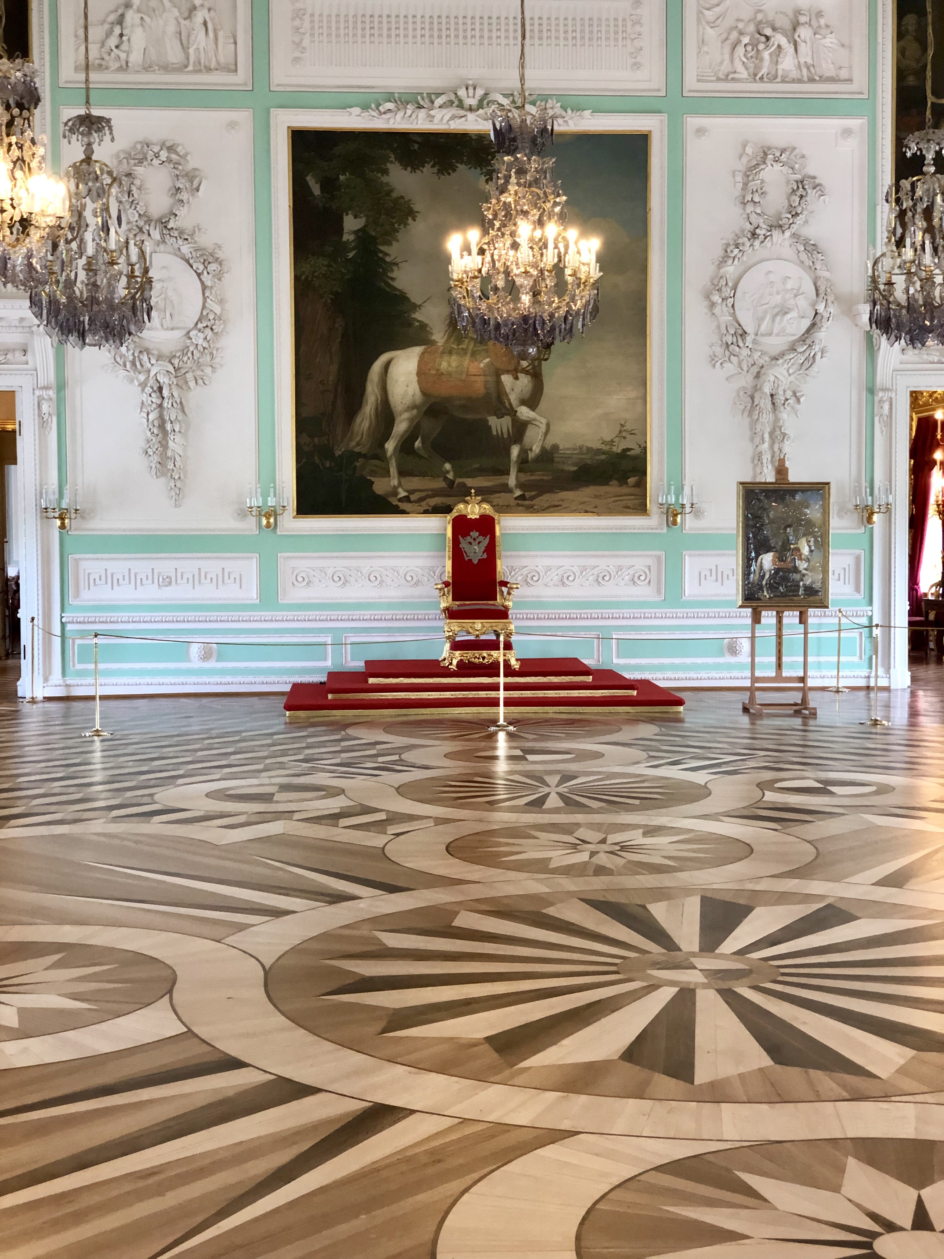 We then got to see the thrown room which was actually a replica. All the circles on the floor lead up to the thrown which sat Peter, Elizabeth and Catherine the Great. At this point we were actually given quite a few interesting facts about Catherine. Catherine the Great (actually the second Catherine to sit on the thrown) was from Germany and was brought to Russia by Elizabeth. Elizabeth expected Catherine to be nothing special but she was cunning, smart and ambitious (not lost on me these are actually the names of my twin sisters). Catherine rose to the throne following Elizabeth’s death and sat on the throne for over 30 years, the longest reign of the empire.