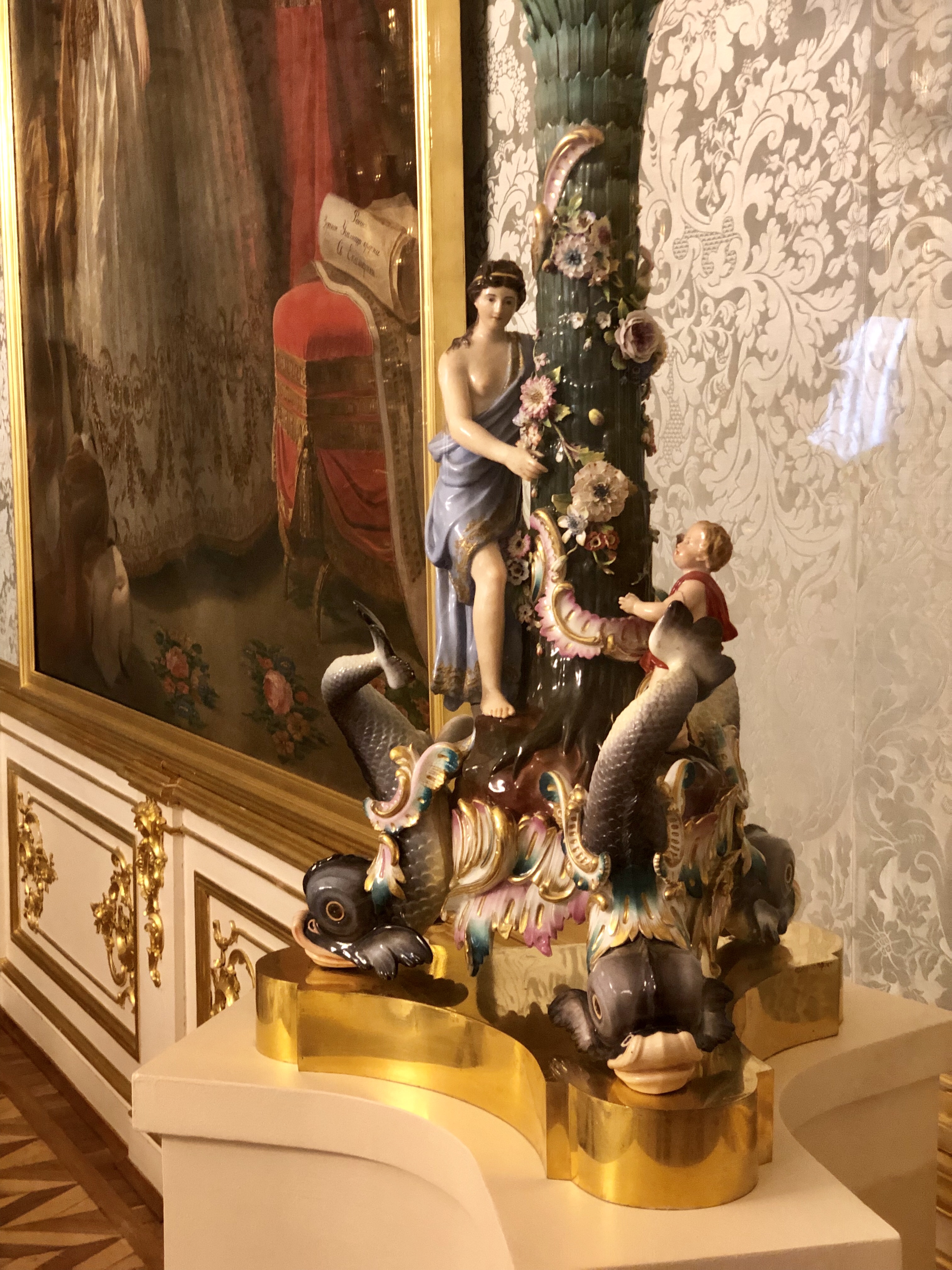 From the thrown room we entered the white dining room which was originally gold but was painted white by Catherine when she was tired of the baroque style