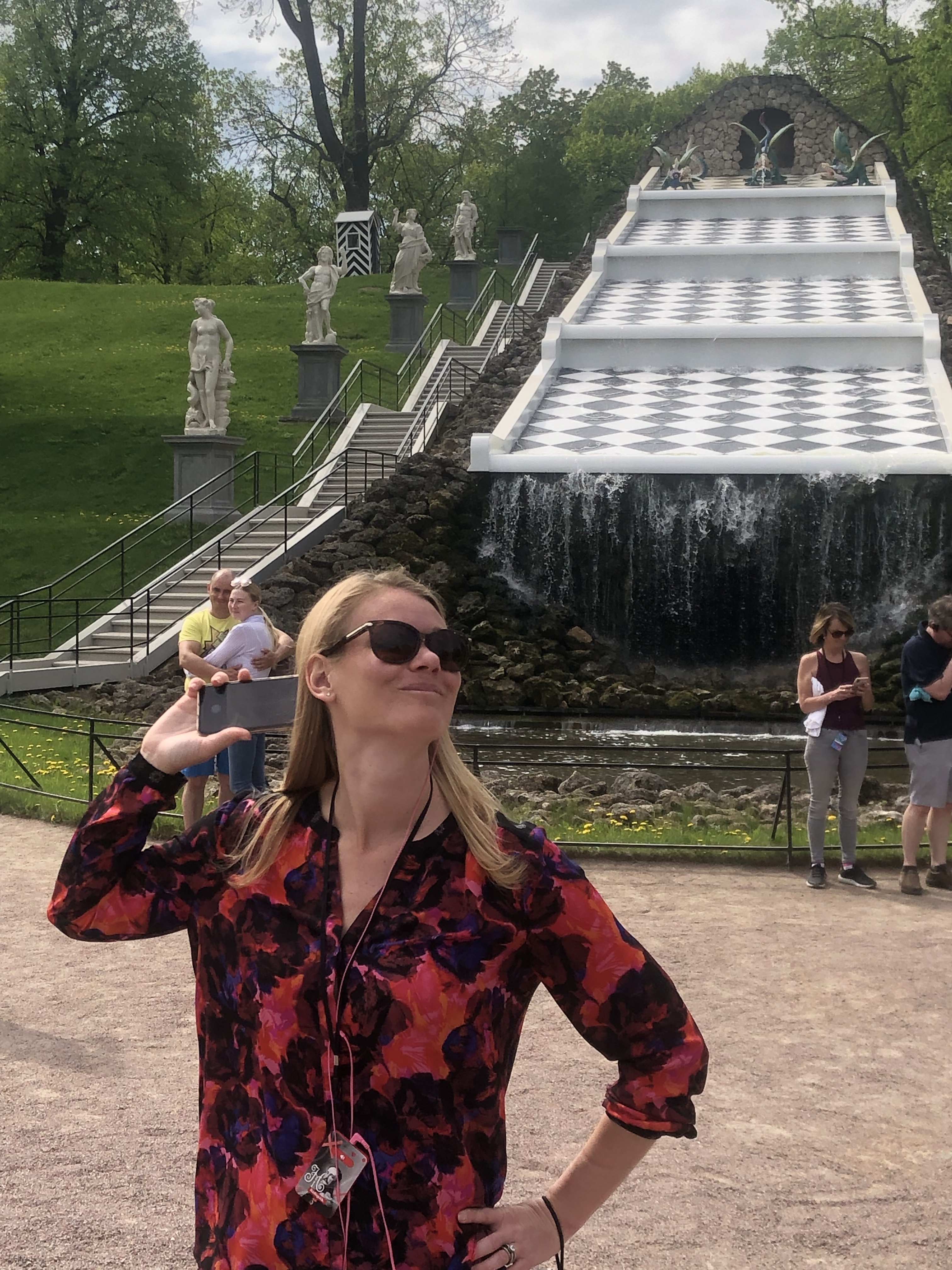 After the grand display we traveled around the grounds to enjoy the other extravagant fountains. The largest was a chess board inspired work. The original wood in the fountain actually rotted out and has since been replaced.