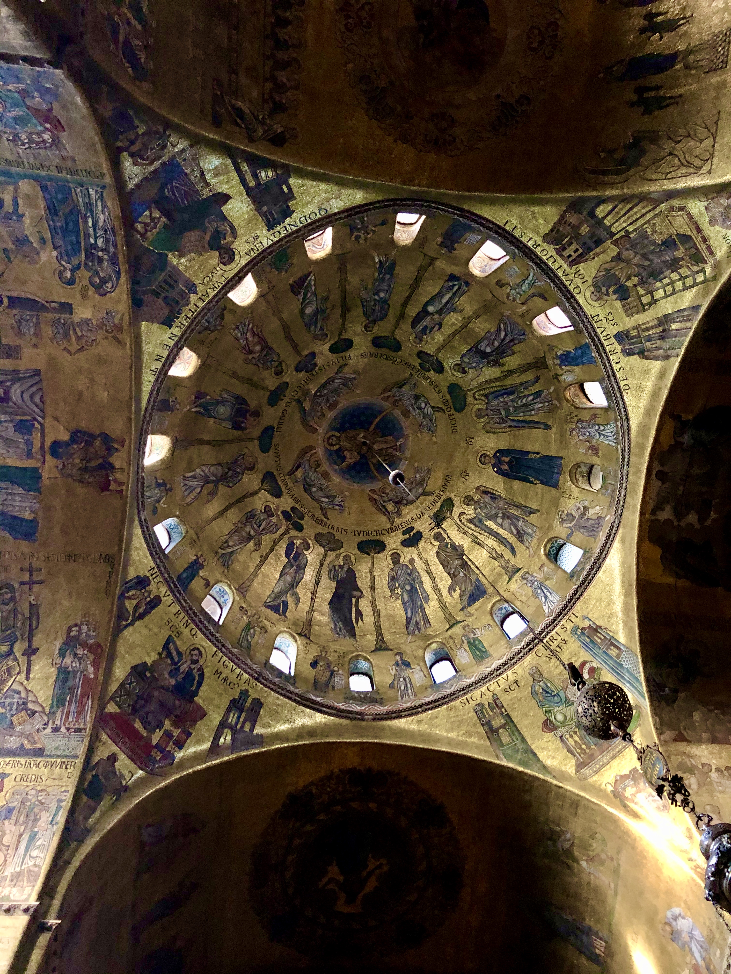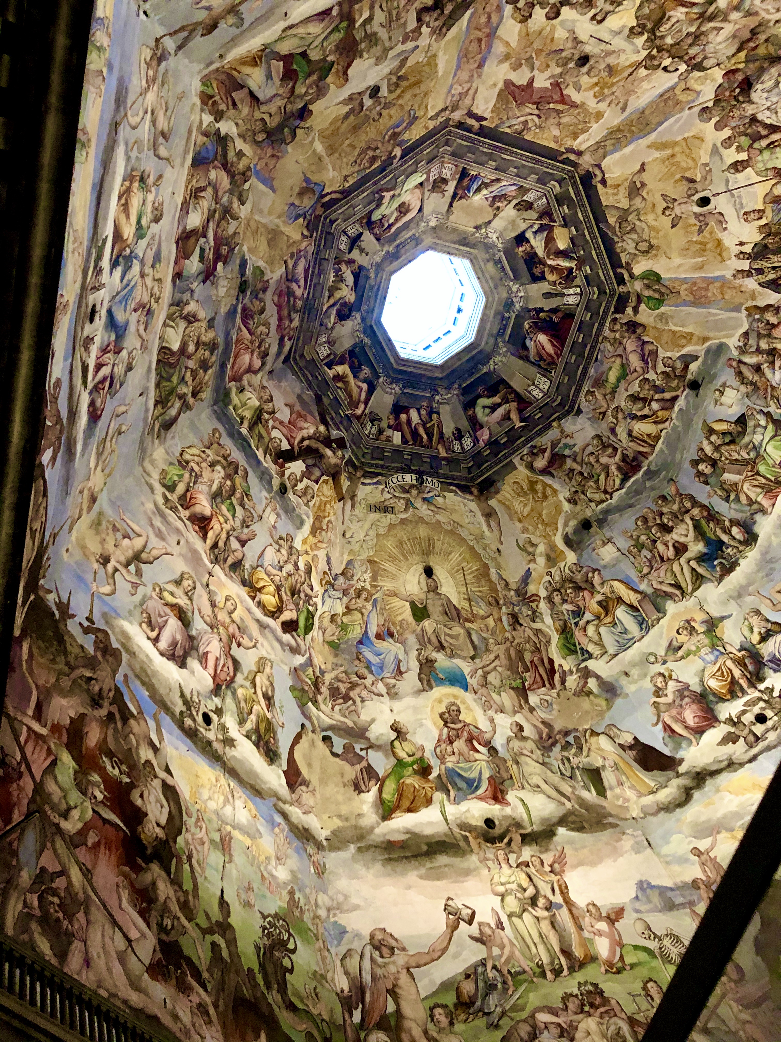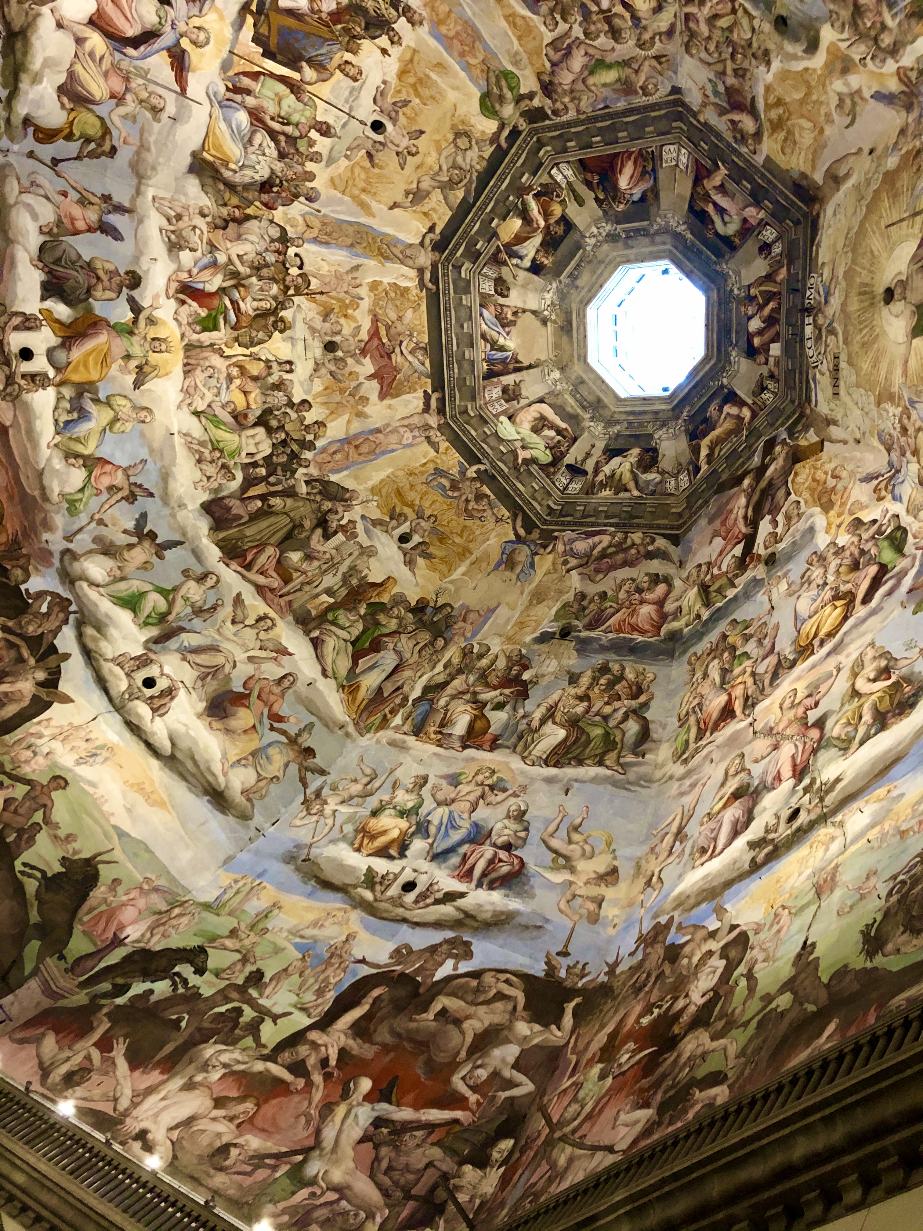 Inside the main sites are the ceiling and a few graves. The dome is perfectly symmetrical – 142 feet by 142 feet. The top circle is open to the air and is the only source of light in the dome. The floor has little holes in it to handle when it rains. This dome was studied to produce the dome at both St. Peter’s and the famed Duomo in Florence.